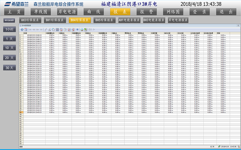 月報表:以全月岸電電源的負荷數據記錄及斷路器操作記錄構成月報表。月報表在月末形成,并能查詢(xún)五年內的月報表。