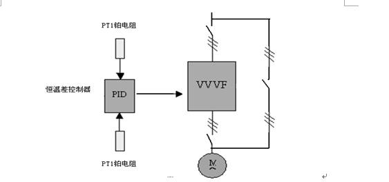 ●恒溫差控制器,用于對Pt1和Pt2測得的溫度信號進(jìn)行轉換、放大、求差,再進(jìn)行PID恒溫差運算處理后,得出0—10V模擬信號,輸出,作為變頻器的頻率給定信號。如下圖: